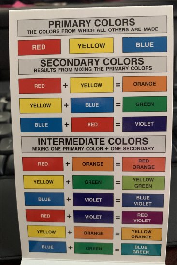 My color mixing page has more information about how and why these factors affect your paint mixing results. You can also check out my color mixing chart for specific paint colors on these spectrums.