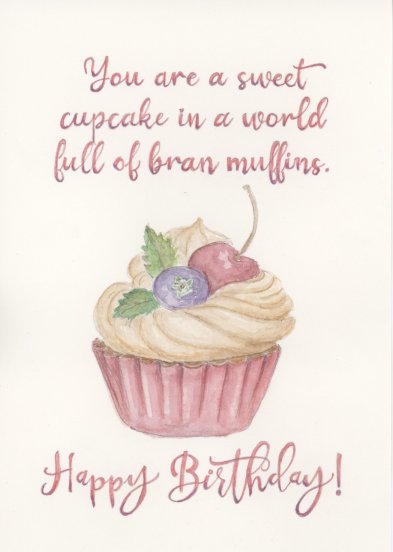 onto the card. Paint the cupcake on another piece of watercolor paper. Once it is dry, cut it