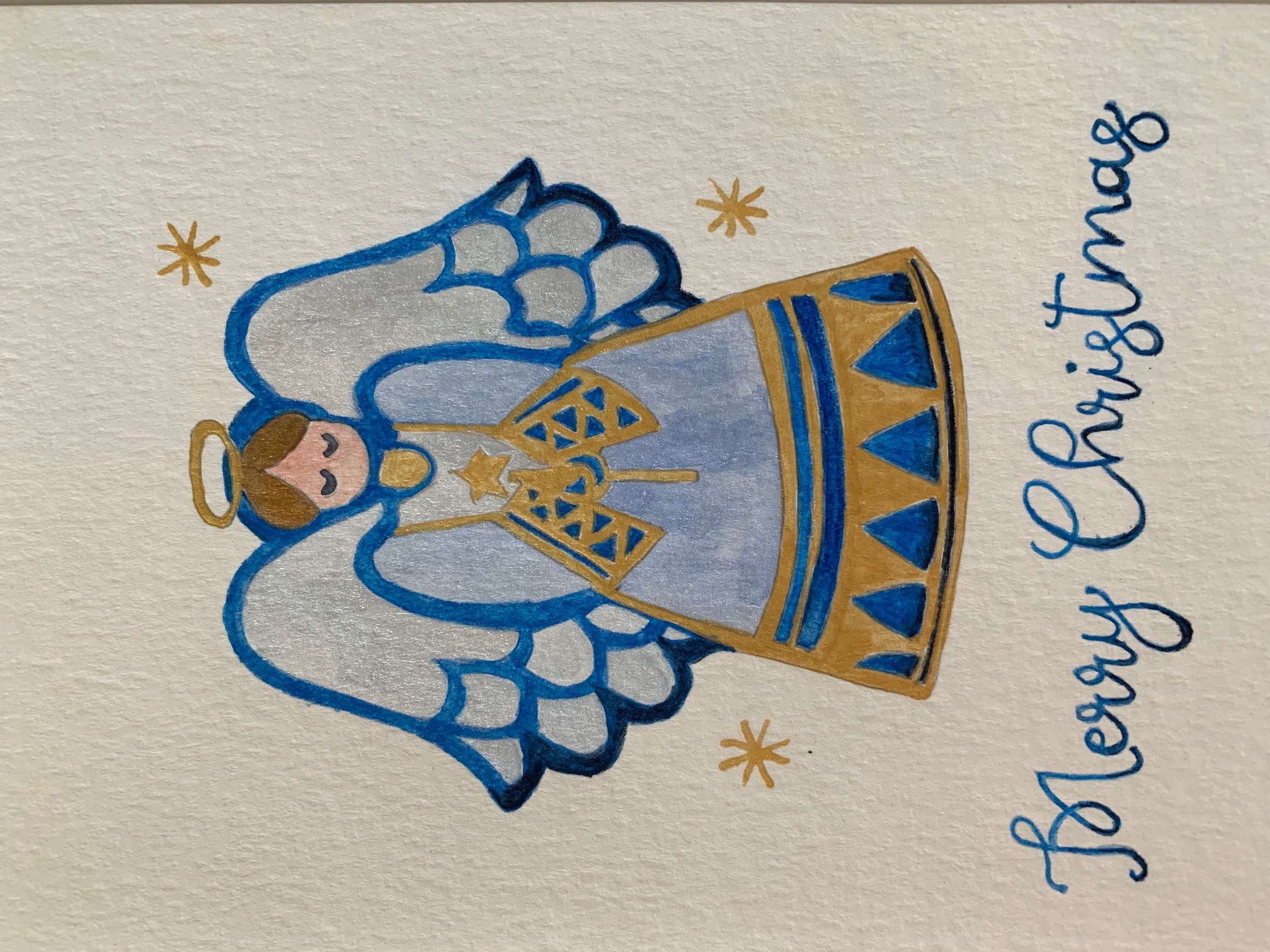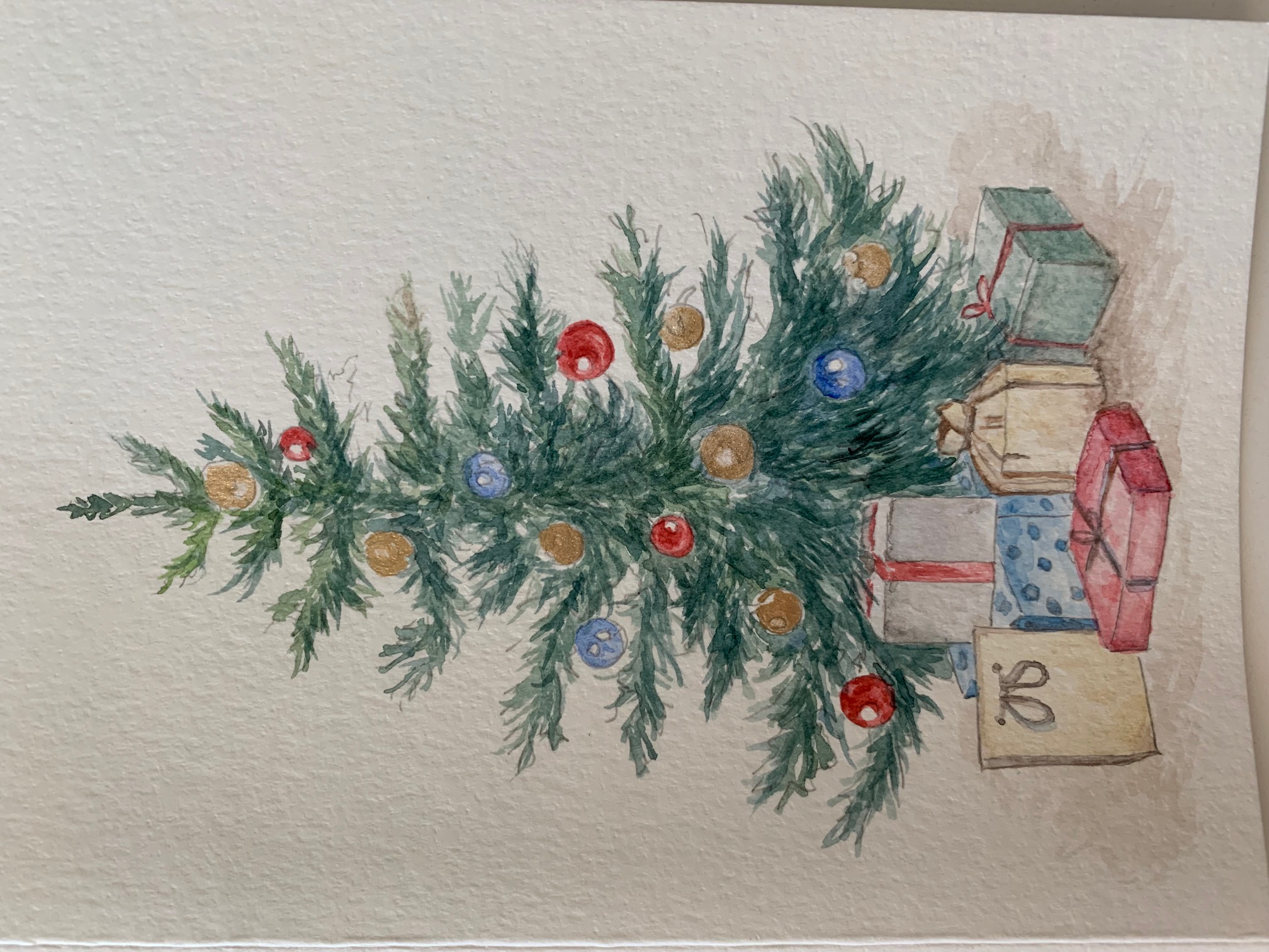 These paints lend themselves to some interesting card ideas, especially for Christmas. I used the metallic paints to create some really pretty angel cards and put gold ornaments on a tree painting.