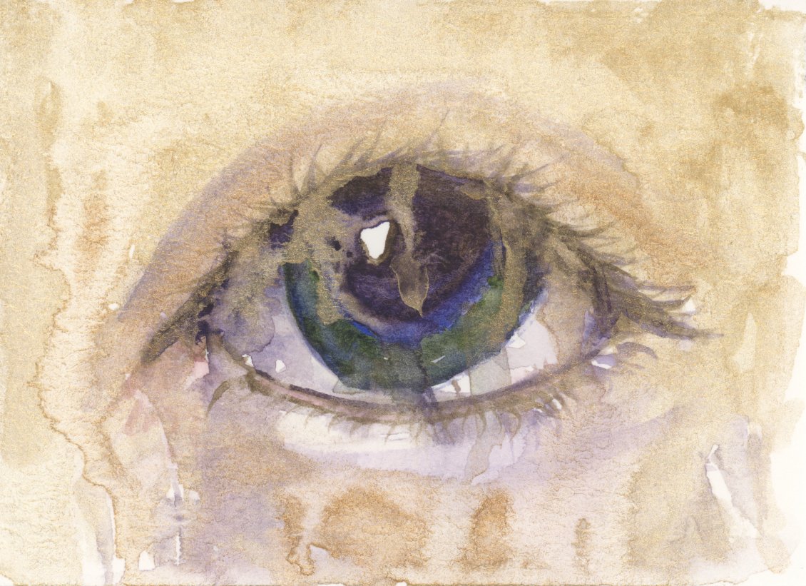 Using metallic watercolor paint, you can create some super interesting effects. While this eye painting was water, I dropped in a mixture of water and metallic paint and just let it run down the page. Metallic paints show up really well against darker backgrounds, so painters use them on black watercolor paper.